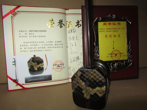 二胡制作大師丁家彭先生1949年出生樂器世家,17歲隨其祖父學(xué)琴藝,并深得精髓,其聰穎好學(xué),悉心鉆研與 探求二胡制作,博得同行的欽佩贊許,更得了許多知名演奏家的稱贊,充分認(rèn)識到二胡制作每個環(huán)節(jié),都對二胡制作都有影響力,因此對二胡的選材,選料,蟒皮都十分嚴(yán)格,二胡整體穩(wěn)定性良好,環(huán)境干擾影響極小。